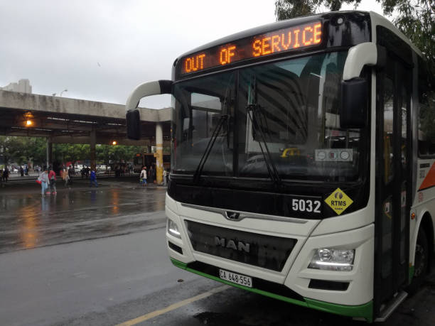 Cape Town, Western Cape / South Africa - February 26, 2019: An out of service bus at the Golden Arrow bus depot in Cape Town
