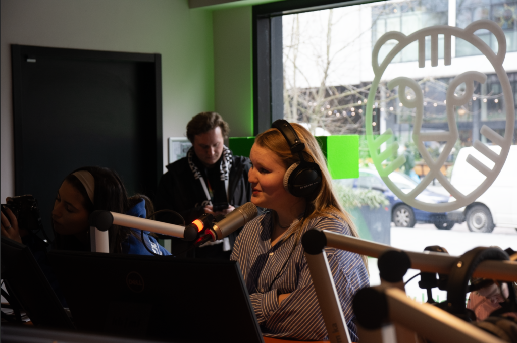 Na de film gingen de tweedejaars studenten van het thema radio naar De Doelen. Hier is een radiostudio waar de studenten kunnen oefenen met live radio maken. Er waren 4 redacties die in een korte tijd hun mening deelden over de film.