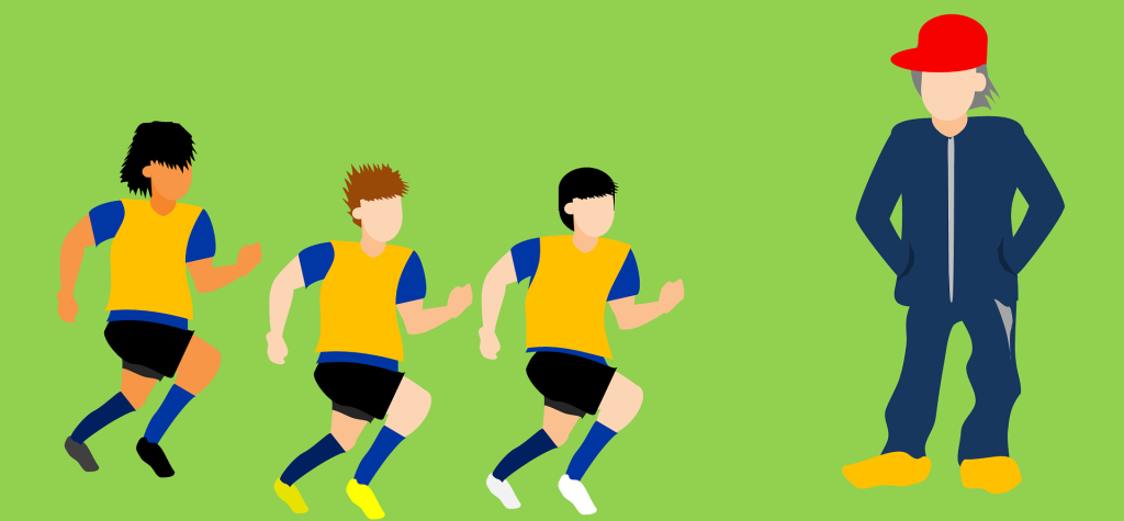Tijd om te voetballen! Aan de hand van het aantal mensen worden er twee of drie gelijke teams gemaakt. In de eerste paar lessen worden de teams willekeurig gemaakt, maar naarmate duidelijk wordt wat iedereen kan, worden de teams eerlijk gemaakt met ongeveer even veel kwaliteit. Er wordt constant gerouleerd zodat elk team aan de beurt komt.