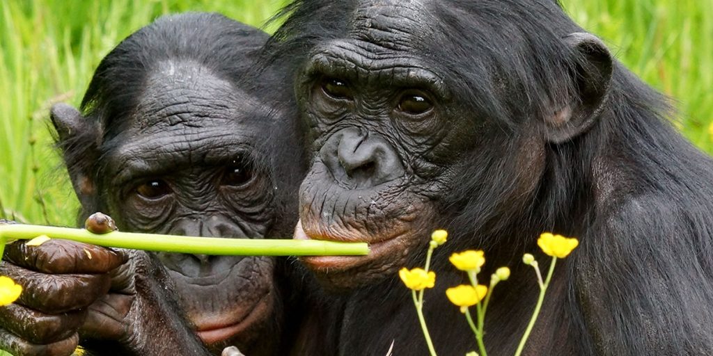 Als je kijkt naar het feit dat bonobo’s uit alle apen grotendeels ons DNA delen, zie je dus ook in de emotionele omgang dat ze erg op ons mensen lijken. Als wij mensen elkaar troosten geven we soms knuffels, we houden elkaar vast, bonobo’s nemen het een stapje verder.